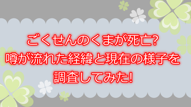 ごくせんのくまにまつわる死亡説の真相、そして現在の様子を詳しく解説します。