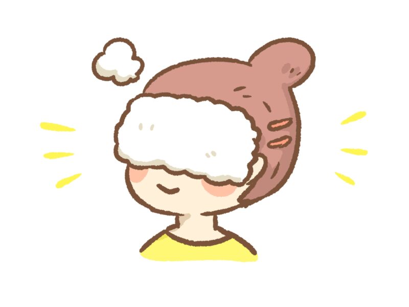 むくみがひどい場合は、蒸しタオルを目元に5分ほど置いて温めると効果的。