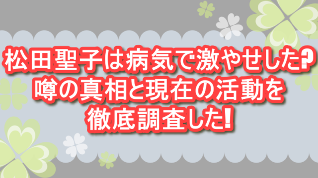 松田聖子は病気で激やせした?噂の真相と現在の活動を徹底調査した!