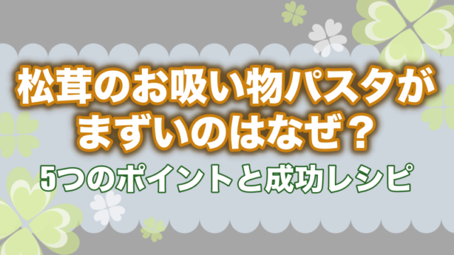 松茸のお吸い物パスタがまずいのはなぜ?5つのポイントと成功レシピ